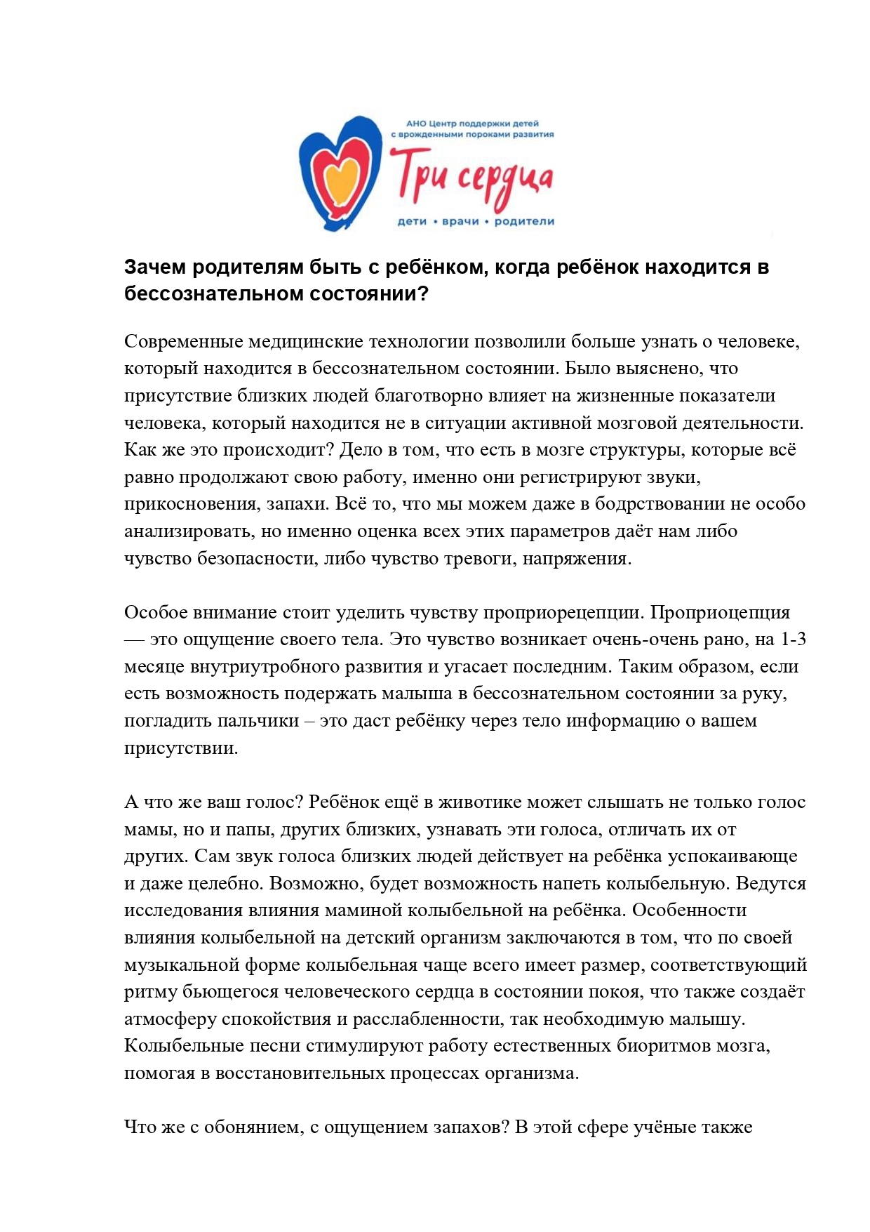 Современные медицинские технологии позволили больше узнать о человеке, который находится в бессознательном состоянии. Было выяснено, что присутствие близких людей благотворно влияет на жизненные показатели человека, который находится не в ситуации активной мозговой деятельности. Как же это происходит? Дело в том, что есть в мозге структуры, которые всё равно продолжают свою работу, именно они регистрируют звуки, прикосновения, запахи. Всё то, что мы можем даже в бодрствовании не особо анализировать, но именно оценка всех этих параметров даёт нам либо чувство безопасности, либо чувство тревоги, напряжения.