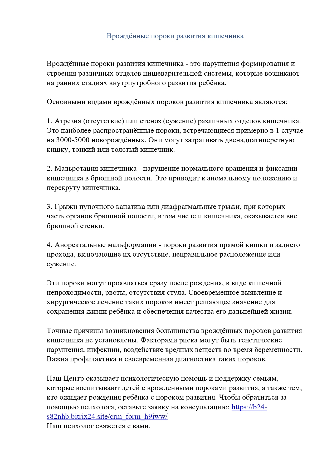 Врождённые пороки развития кишечника
