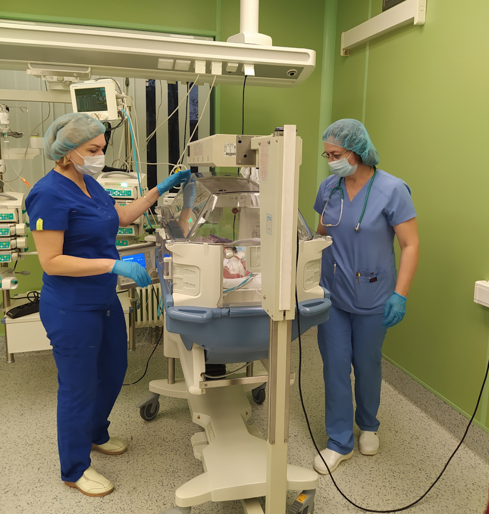 Медицинские работники наблюдают за новорожденным в детском отделении интенсивной терапии