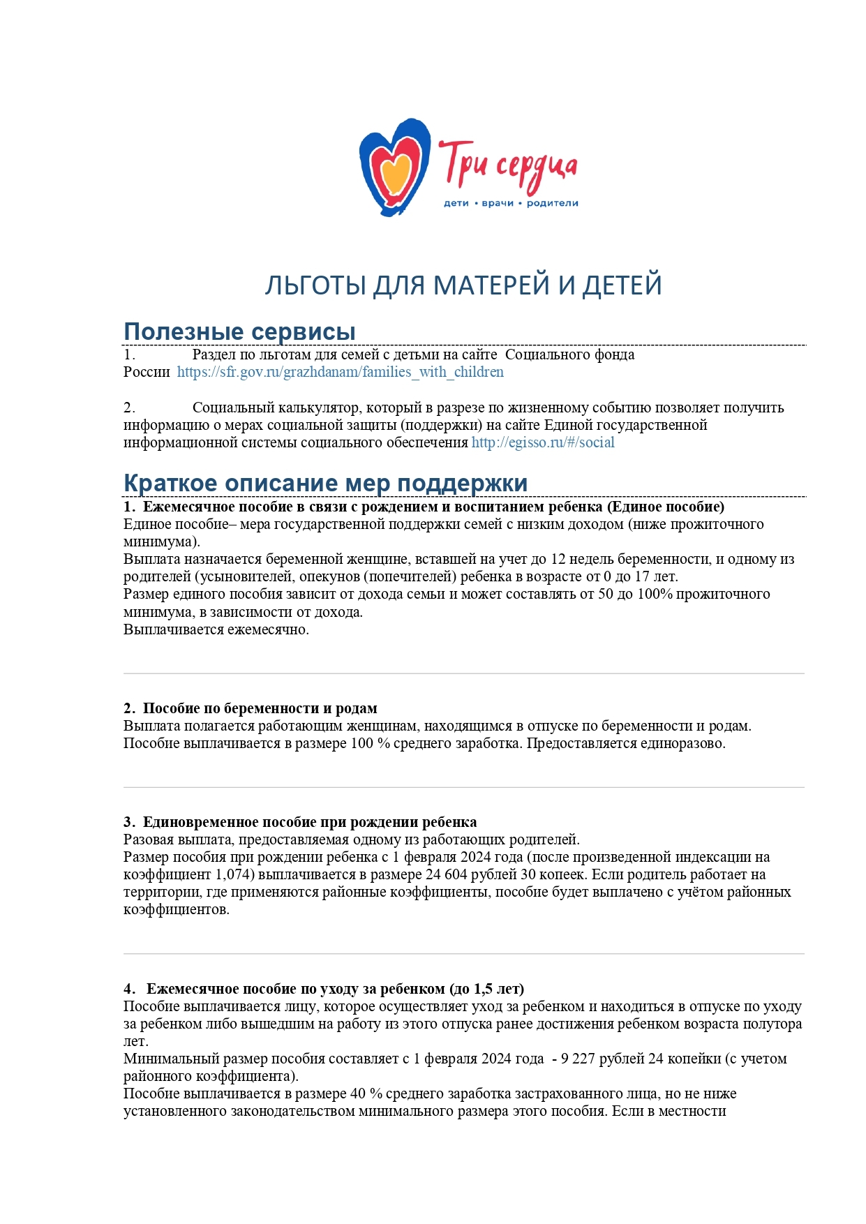 - Раздел по льготам для семей с детьми на сайте Социального фонда России https://sfr.gov.ru/grazhdanam/families_with_children