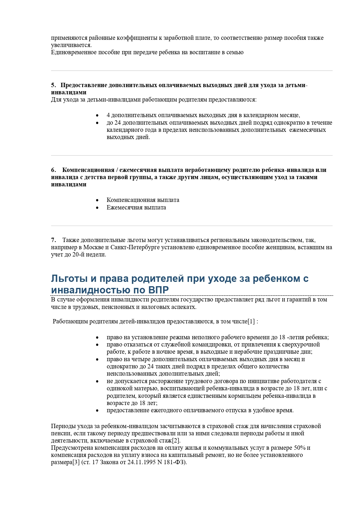5.Предоставление дополнительных оплачиваемых выходных дней для ухода за детьми-инвалидами